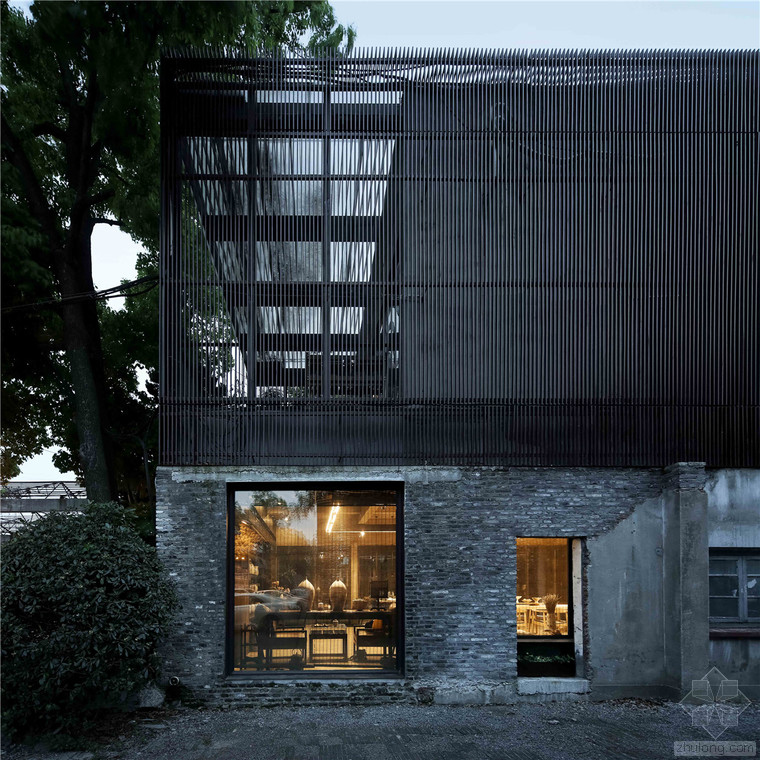 瓷語(yǔ)堂項(xiàng)目是對(duì)建筑原真性的一次回歸,我們希望通過(guò)一個(gè)最簡(jiǎn)單的手段介入場(chǎng)地,使得建筑物僅僅作為一個(gè)“存在”與基地發(fā)生關(guān)系,而不是通過(guò)美學(xué)加以評(píng)判。在面對(duì)場(chǎng)地現(xiàn)狀已經(jīng)存在的幾棟老建筑和一棵大樹,我們希望它們可以成為場(chǎng)地記憶的再現(xiàn),作為新建筑的一部分共同留存下去,而不是簡(jiǎn)單的粗暴拆除并由一個(gè)全新的物體所替代。通過(guò)合理的結(jié)構(gòu)布置和構(gòu)造處理,新房子輕巧的微微落于老墻之上,二者完整的融合在了一起,斑駁的老墻和由磚、木等樸素材料構(gòu)筑的新建筑自然而然的和諧共生,而老墻的歲月留下的痕跡亦為建筑提供了不可復(fù)制的特征。場(chǎng)地上的大樹成為了我們南側(cè)的重要遮蔽,使得二層的露臺(tái)不會(huì)直接暴露在正對(duì)的一條小路前面,同時(shí)也為露臺(tái)貢獻(xiàn)了不同季節(jié)的多樣風(fēng)景和光影特質(zhì)。作為陶瓷藝術(shù)家展示、交流和工作的場(chǎng)所,空間的布置簡(jiǎn)潔而不失特點(diǎn),混凝土、青磚等樸素而帶有一點(diǎn)點(diǎn)粗糙質(zhì)感的材料與陶瓷藝術(shù)品相映成趣,建筑低調(diào)地成為了作品的背景。